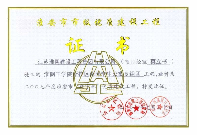 2007年市翔宇杯淮安市高级职业技术学校教学楼(开发区)-纪