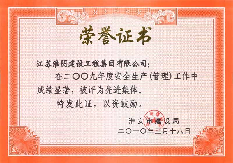 2009年江苏省建筑业“最佳企业”