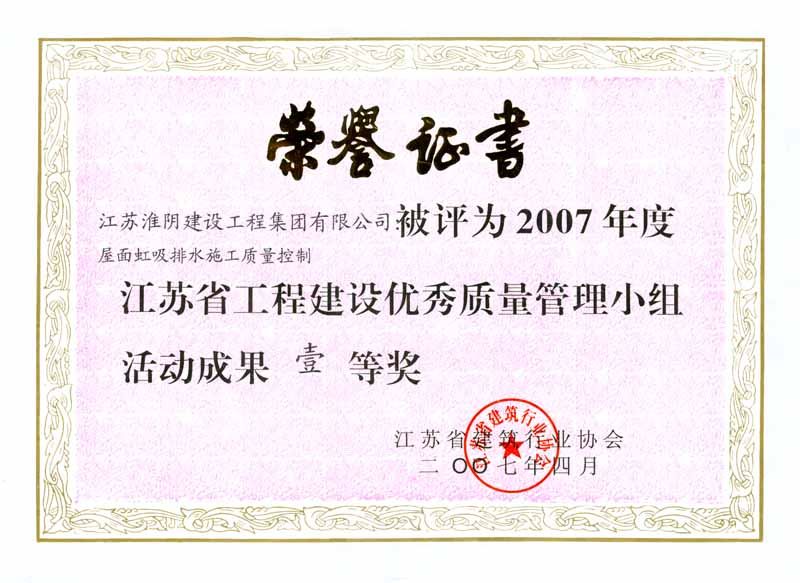 2007年省工程建设优秀质量管理小组活动成果壹等奖-屋面虹吸排水施工质量控制