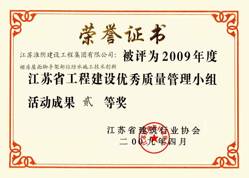 2009年省QC二等奖(裙房屋面脚手架部位防水施工技术创新)