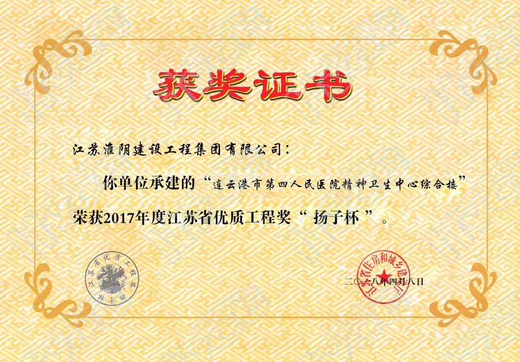 2017年度江苏省优质工程奖“扬子杯”-连云港市第四人民医