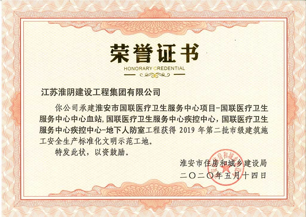 淮安市建设施工标准化文明示范工地-涟水创业园